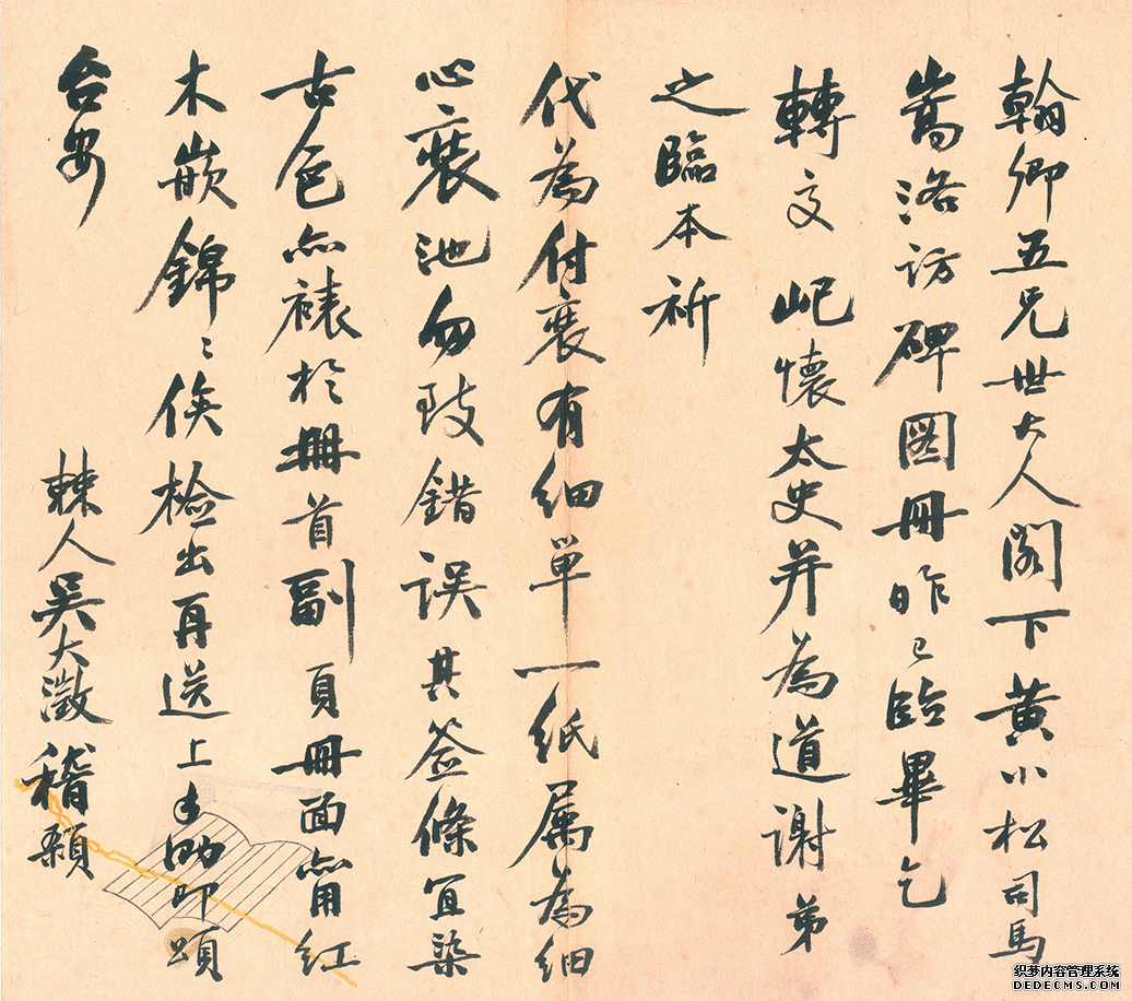 礼祺。弟大澂顿首。八月初八日。岱庙、孔庙、华岳庙规模甚大,不易著手。