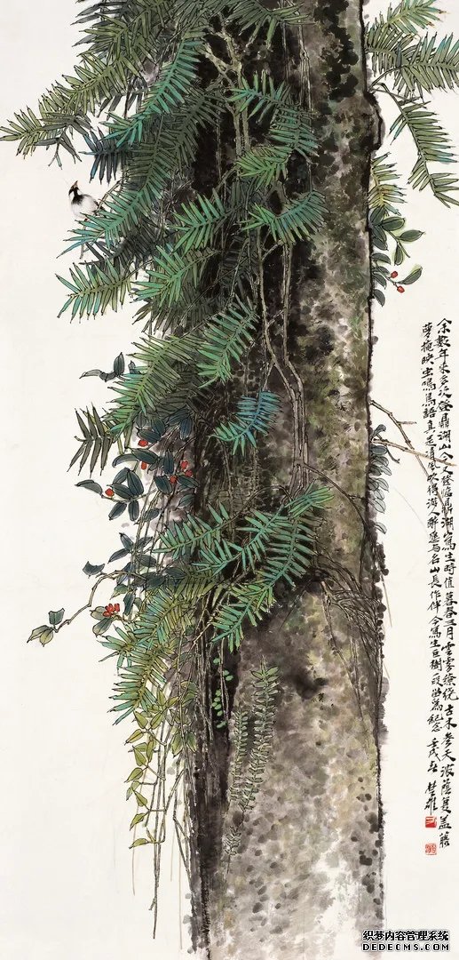 《鼎湖山中》 纸本设色 134x64cm 1982年