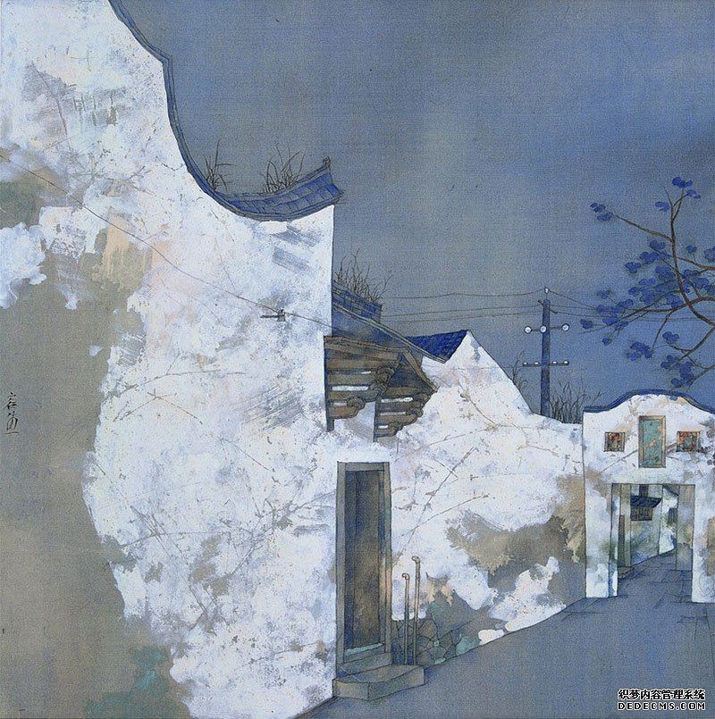他的作品色与墨泾渭分明,虚实有度,画面跳跃而不凌乱,构成紧凑而富有装饰趣味,清雅与古厚兼备,深远与简淡并存,清疏温润,安然自在,平逸和谐,还弥漫着一种人与自然相依相存的亲切感,展现出独特的东方诗情。