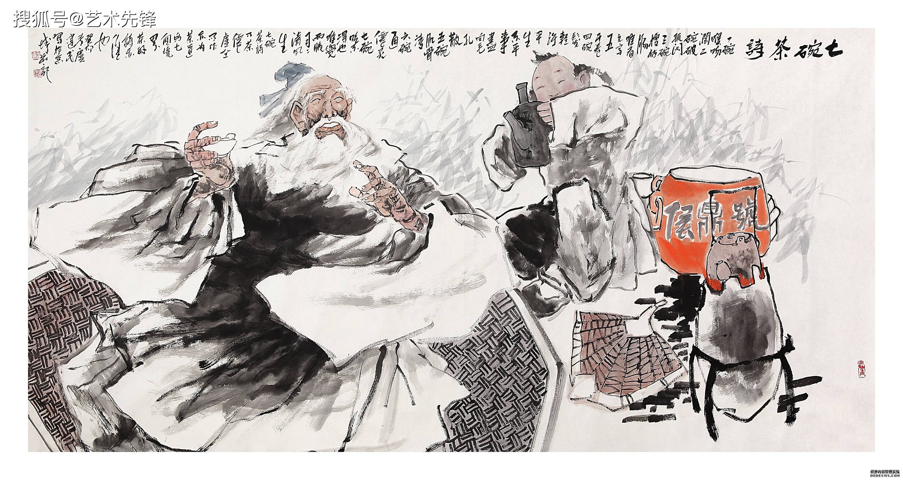 其次,画家卢建民的人物画作品充满了深厚的文化内涵和人文精神。他的人物画不仅仅是简单的形象描绘,更是对人物内心世界的深入挖掘。无论是高士、僧人还是道士,他都能够通过洒脱的笔触,将人物的内心世界表达得淋漓尽致,展现出一种望而神圣的心理反射。在画家卢建民的人物画作品中,我们可以看到他对人物情绪的细腻表现,又可以享受其笔墨赋予给人物的豪放、洒脱、飘逸等性格。其画面气氛的巧妙运用,以及表达出的思想意义,形成了一种温暖的视觉感和生动的画面感受,观者可以深刻感受到画家卢建民胸怀人文的情感和卓越的才华。
